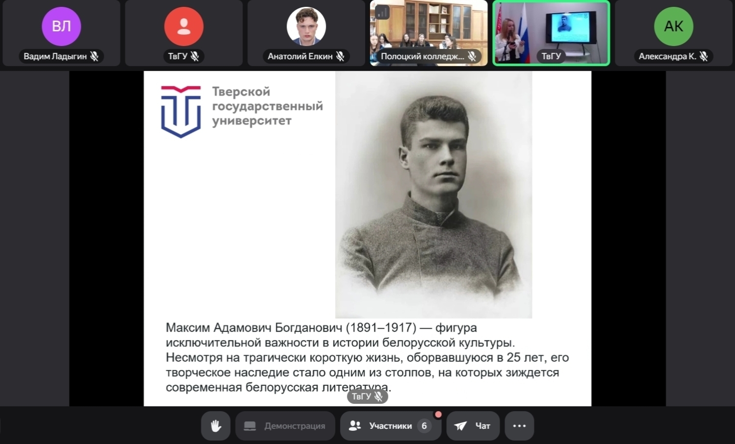 9 декабря 2025 года состоялся Круглый стол, приуроченный к 134-й годовщине со дня рождения Максима Богдановича. Мероприятие проведено по инициативе клуба "Беларуская народная культура" Центра традиционной культуры Тверского государственного университета.